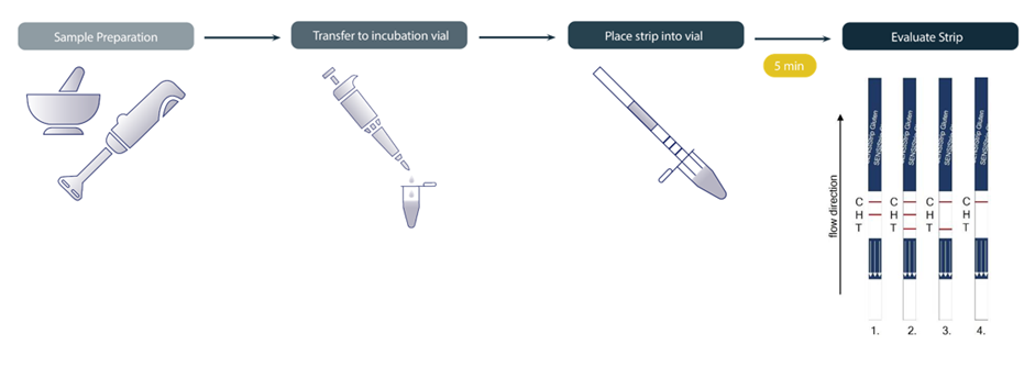 Given the significant risks these allergens pose, precise and sensitive allergen detection systems are essential to ensure consumer safety. Our SENSIStrip lateral flow tests provide rapid and reliable allergen detection, featuring an integrated hook-line technology to prevent false negative results and to ensure maximum reliability.